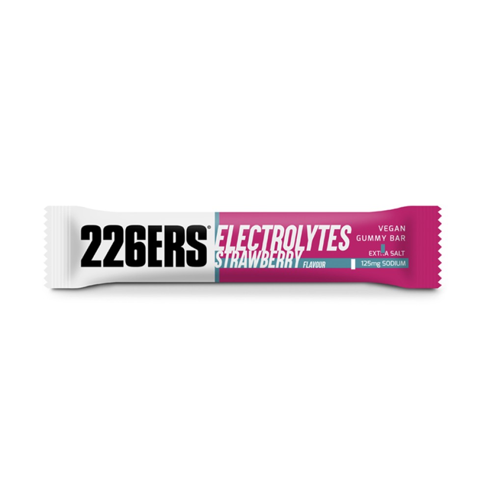 Una Gummy Bar Electrolyte contiene, 125 mg de Sodio, 27 mg de Magnesio y 9 mg de Potasio. Dos barritas de gominola contienen la misma cantidad de sales minerales que una cápsula Sub9 Salt Electrolyte. Son ideales para quienes necesitan energía tanto en entrenamientos como en competiciones y prefieren no usar el formato gel. Es lo más parecido a una bebida solida de 30 gramos que aporta energía y sales minerales. PESO NETO: 30g. FORMATO: Barrita.